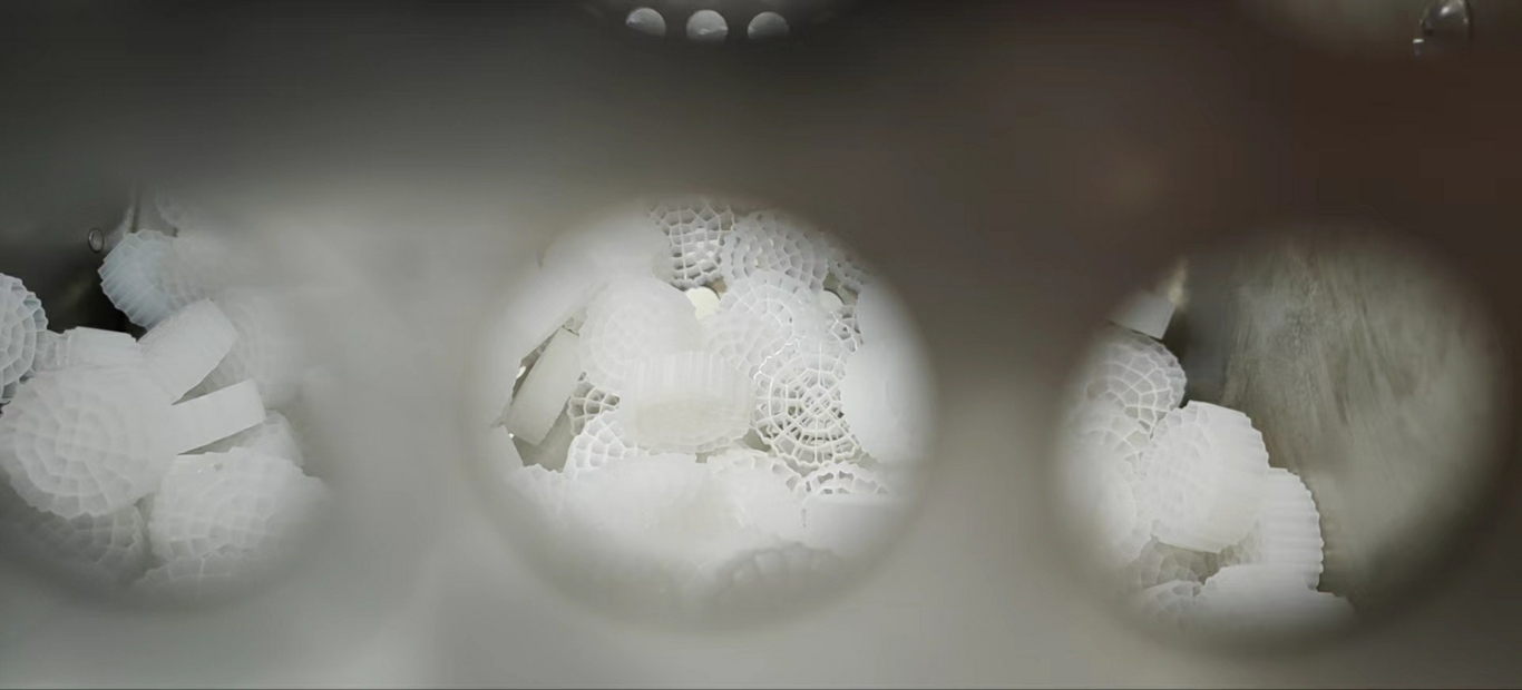 粗糙化表面和极性官能团为微生物(如硝化菌、反硝化菌)提供了更稳定的定植环境,微生物附着量可提升 20%-60%,且形成的生物膜更致密、不易脱落;同时,亲水分散性确保填料在反应器内均匀分布,避免 “死区”(无微生物区域),提高污水净化效率(如 COD 去除率、氨氮降解率可提升 10%-25%)。